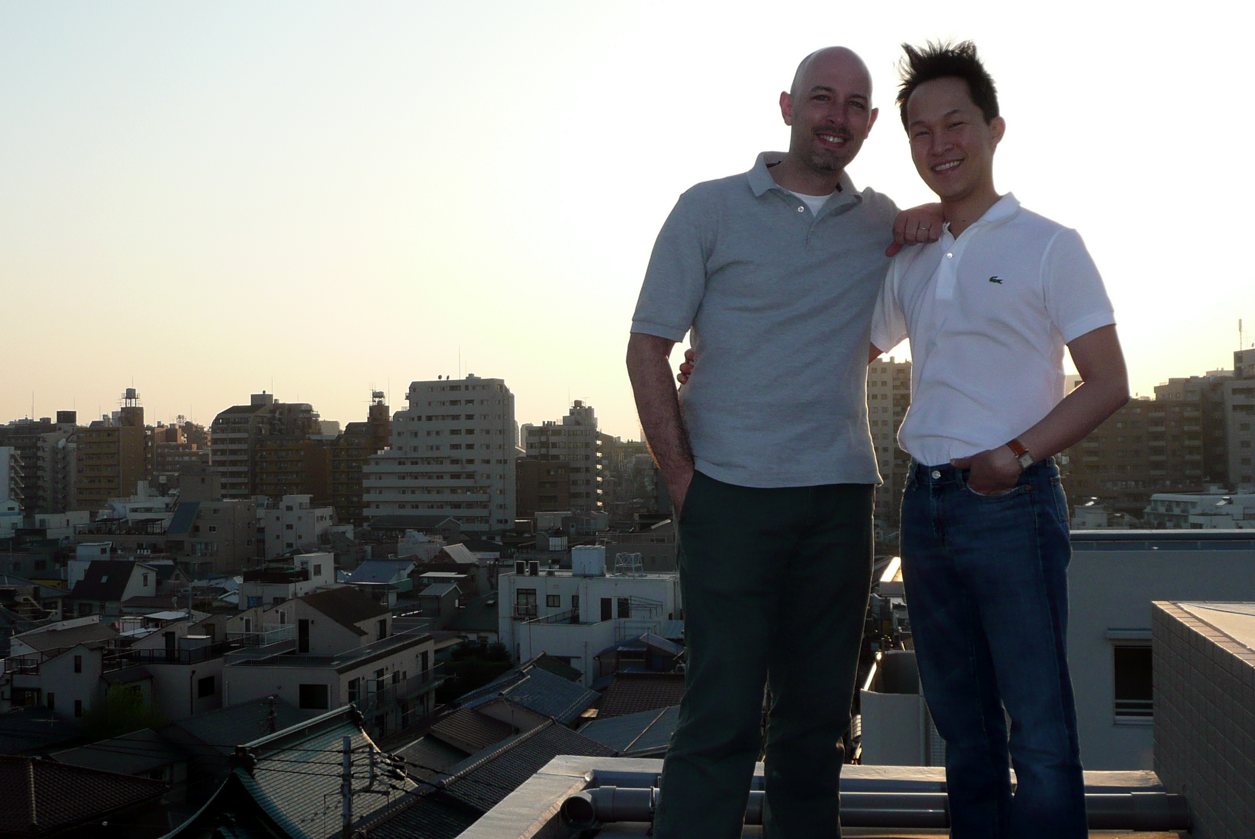 We stopped by Alex’s condo for a drink of water and then to climb onto the room and take in the view of Tokyo as the sun lowered.  As you can tell from Tawn’s hair, it was a bit breezy at this point.