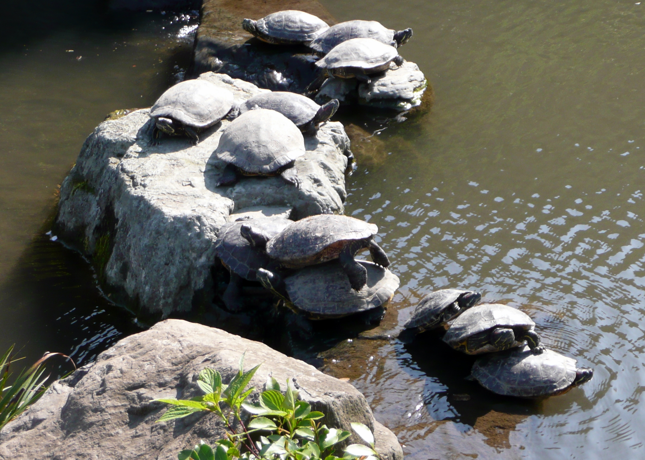 We continued through another park and shrine where we caught a group of turtles dozing on top of one another in the afternoon sun.  It was pleasant weather – about 22 C / 72 F and a light breeze.  We couldn’t have asked for better temperatures.