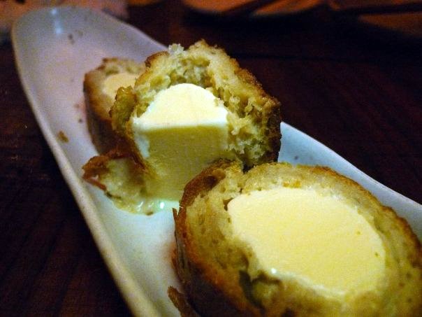 Buta-suki corokke (pork sukiyaki croquette) which you dip in raw beaten egg before eating.