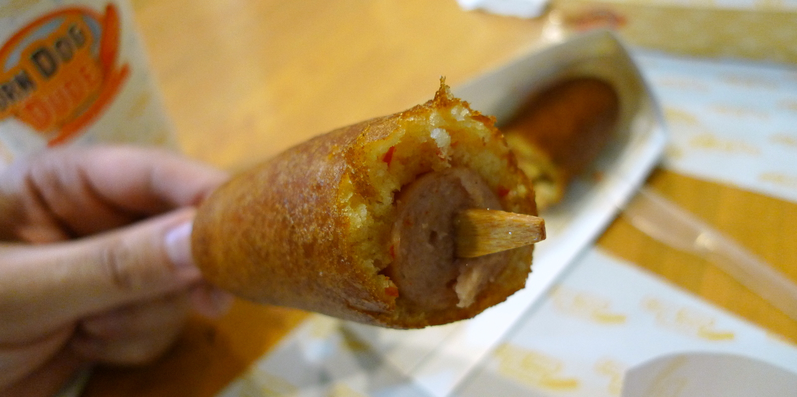As you might expect from the name, Corn Dog Dude’s menu also includes corn dogs. I had a spicy dog that has chilies in the batter. These are well-made and the batter comes out flavorful and crisp without being oily. On a subsequent visit, I also tried the nacho dog, which is a hot dog with all the makings you would find for nachos, including chips.