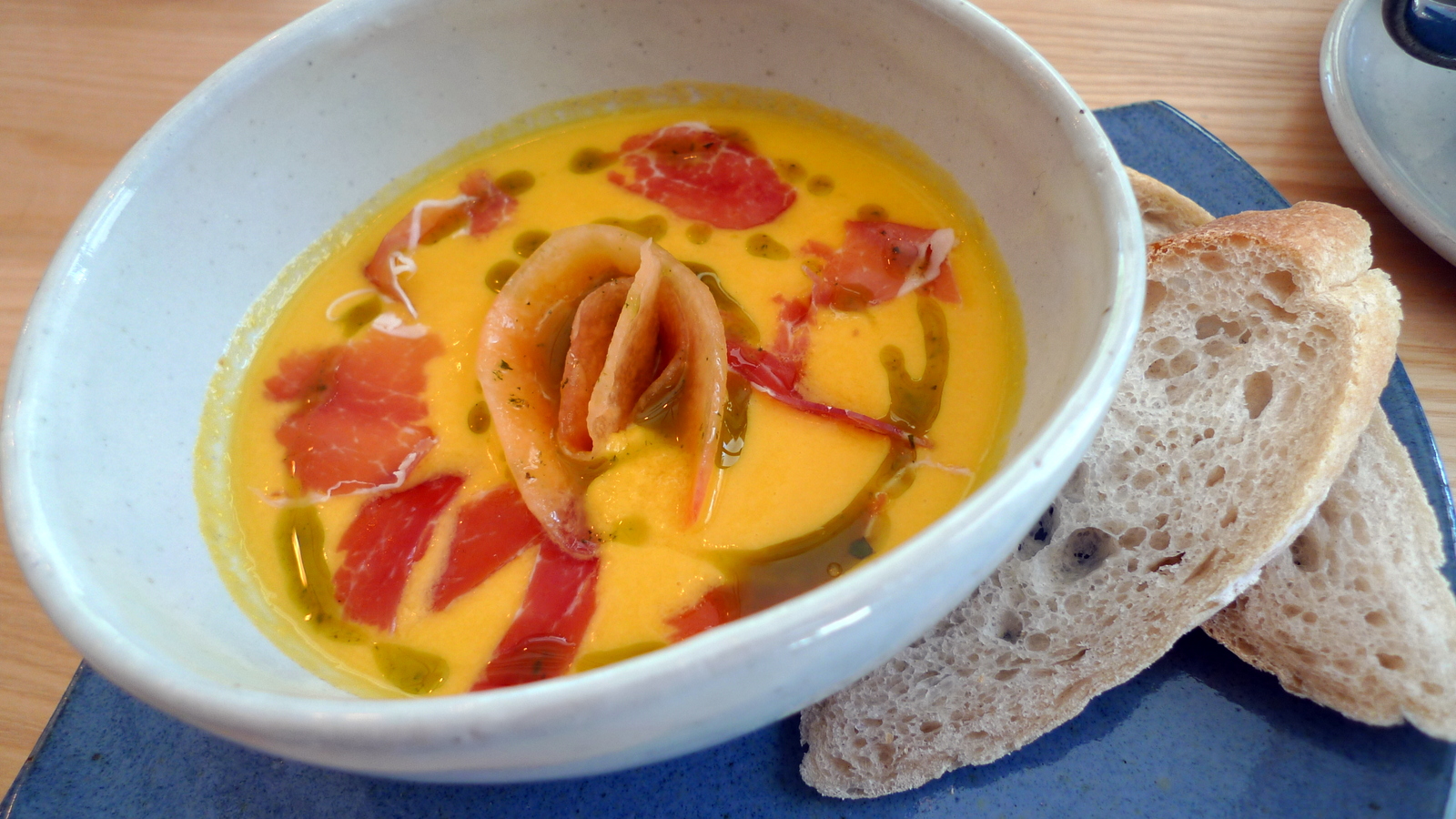 As of my last visit, the restaurant is still using a “soft opening” menu offering a more limited range of selections. What I had was impressive, though, including this chilled melon soup with prosciutto. Very refreshing and perfect for a summer’s day.