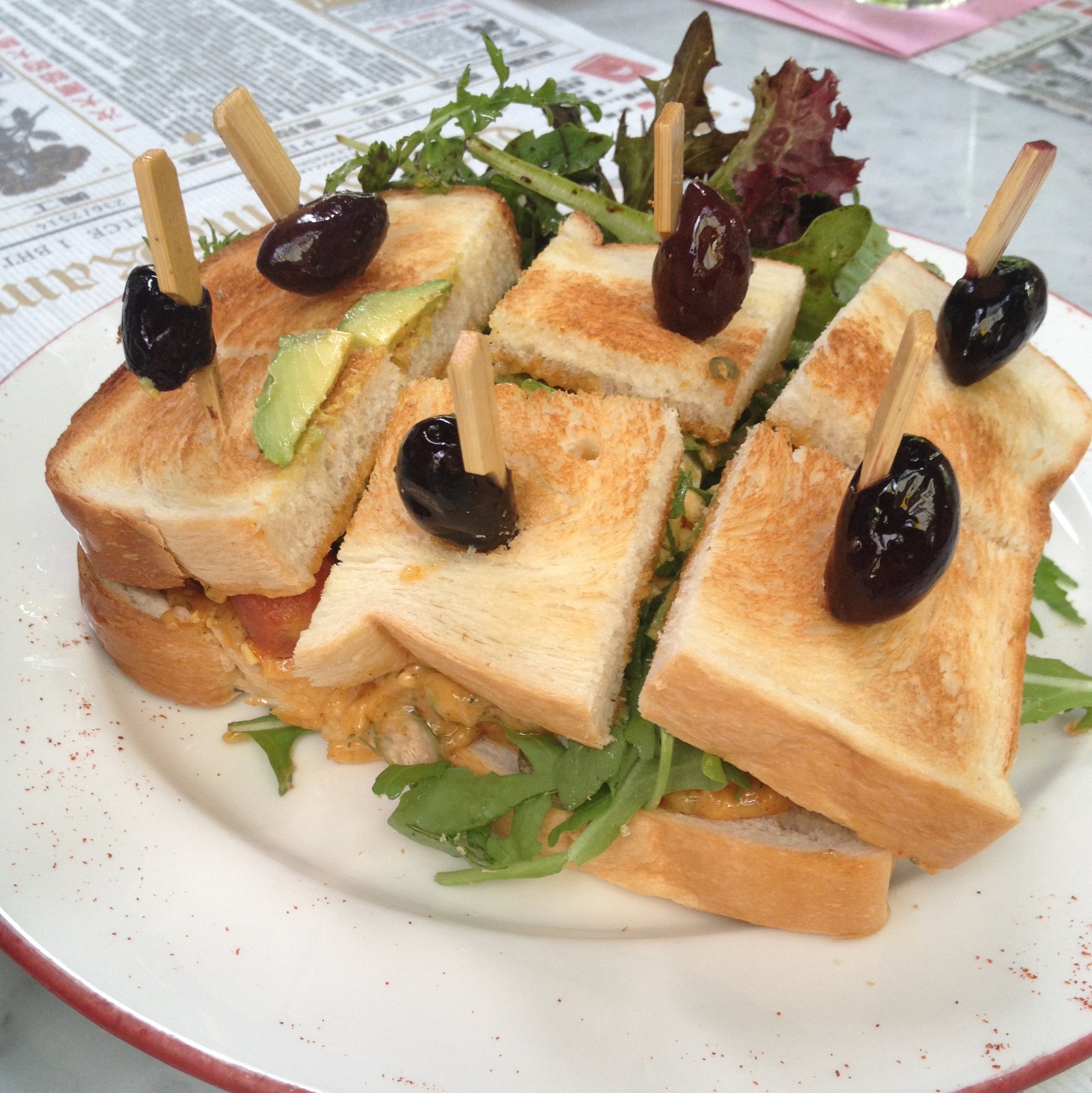 The crab-avocado sandwich has a spicy truffle mayonnaise, rocket, hard boiled egg, and tomato confit. This was a tasty sandwich although the use of plain thick-cut white bread was a bit of a letdown. Something whole grain would have been nicer.