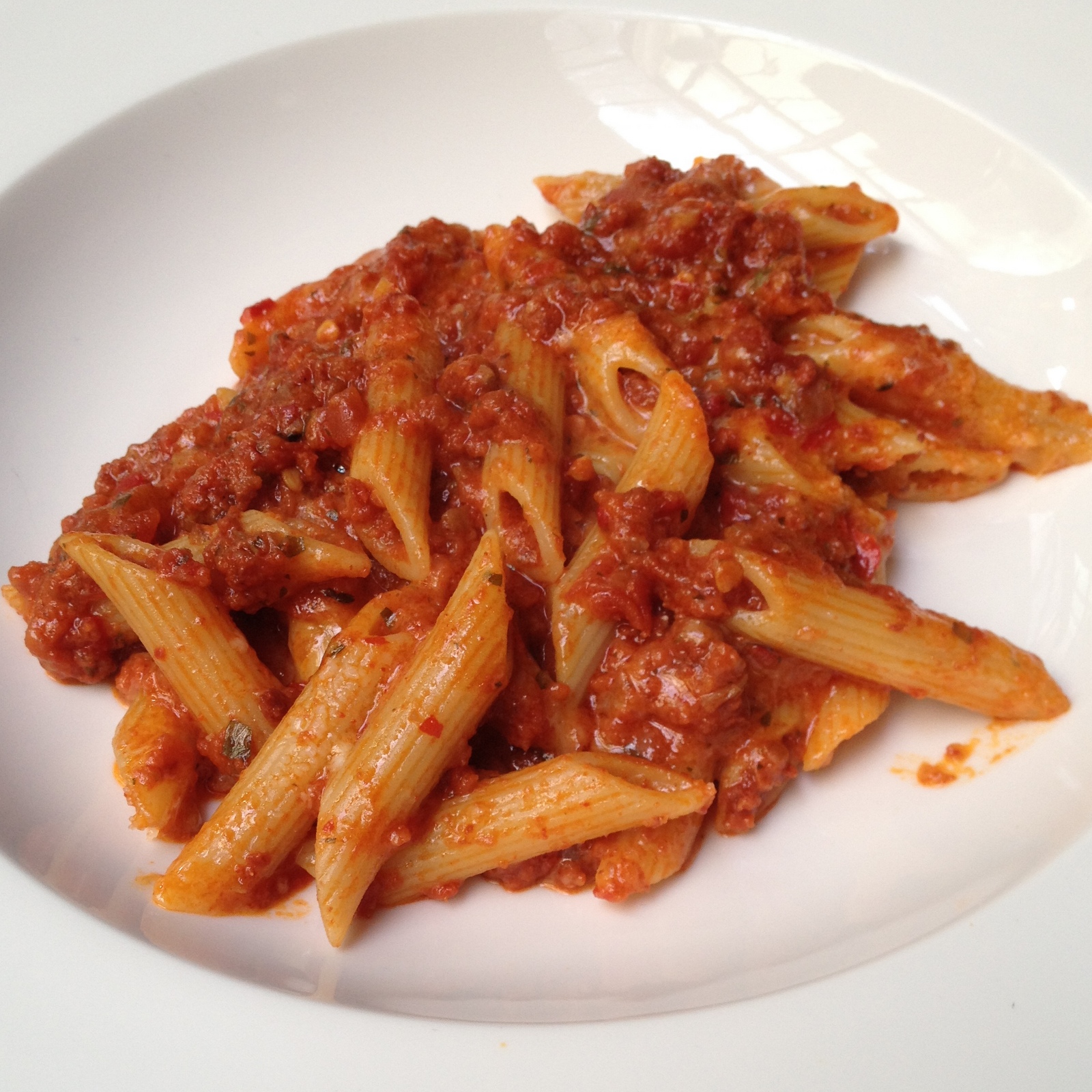 Penne with N’Duja, an Italian spicy sausage that seems to be quite the favored ingredient here in Bangkok these days, along with Burrata cheese. The sauce was really tasty, though, and the pasta was properly cooked.