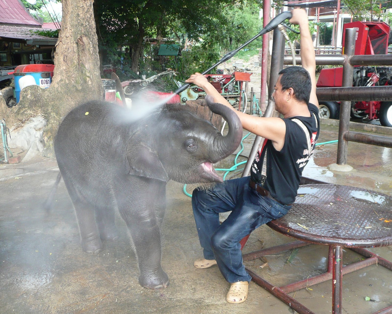 Two bits of video I want to share with you from the Samphran Elephant Grounds: an elephant using her trunk to drink from the tap, and another elephant dancing in her pen to the Mission: Impossible theme.