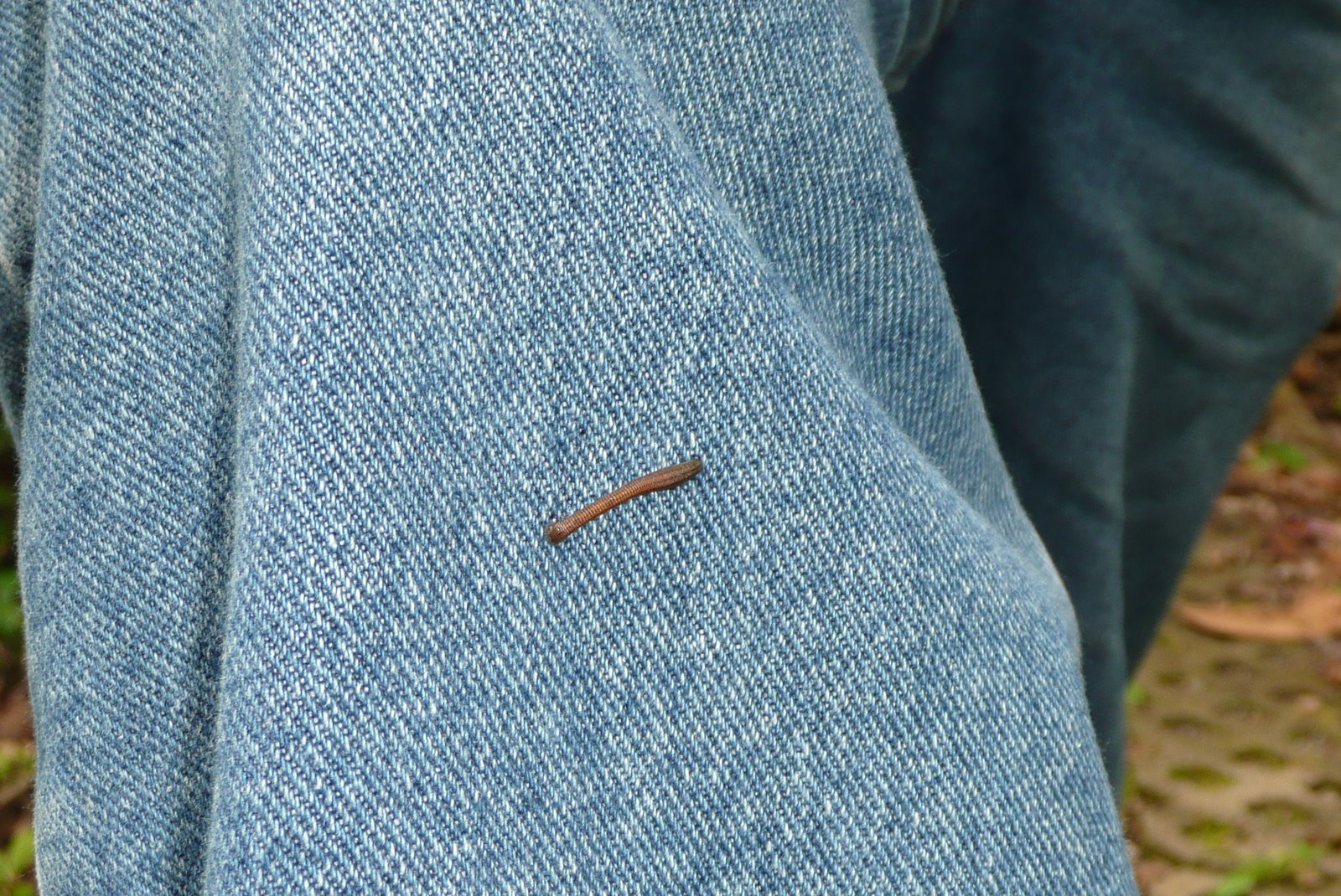 The trail was overgrown and in places, completely veered off into uncharted territory. Along the way, we discovered a bit more of the local fauna than we wanted to: leeches. Here’s a view of the leeches we acquired and the larger ones we managed to avoid.