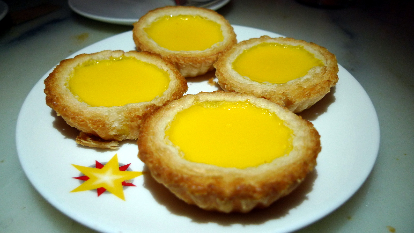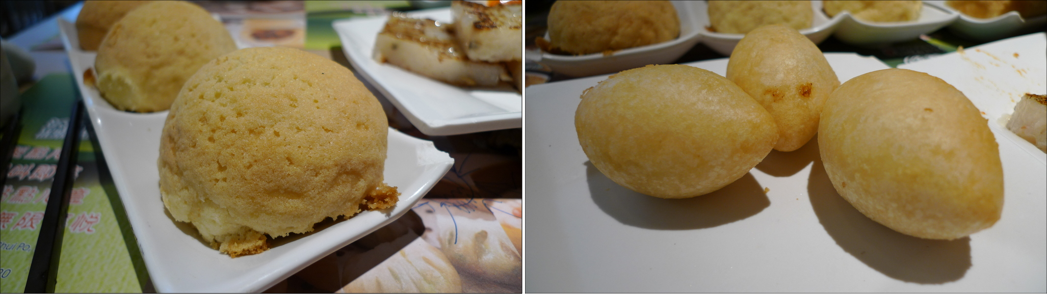 For dessert, we shared a few items that didn’t photograph well plus these lovely egg custard tarts. With a very flakey and not-too-oily crust, the tarts were a nice conclusion to the meal.