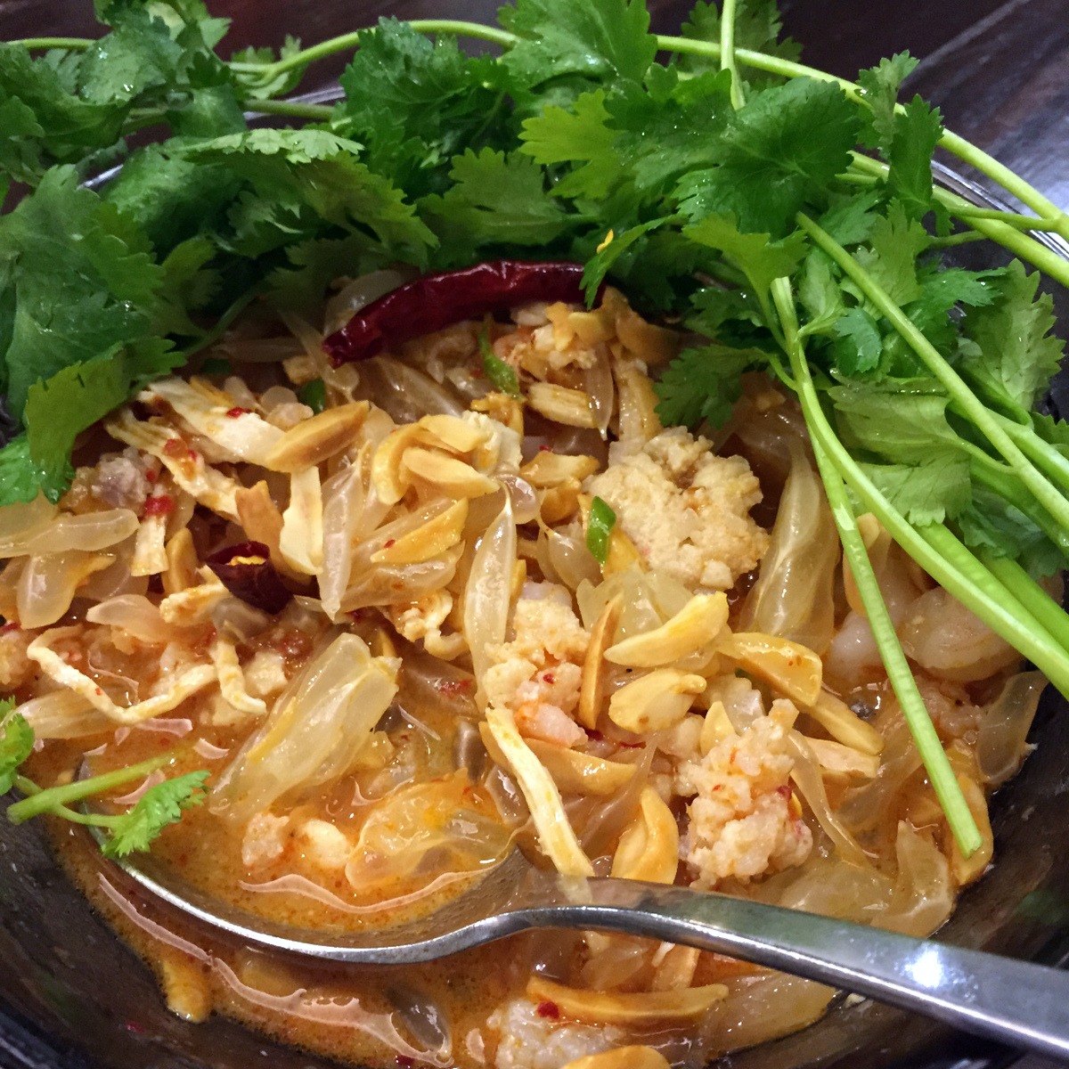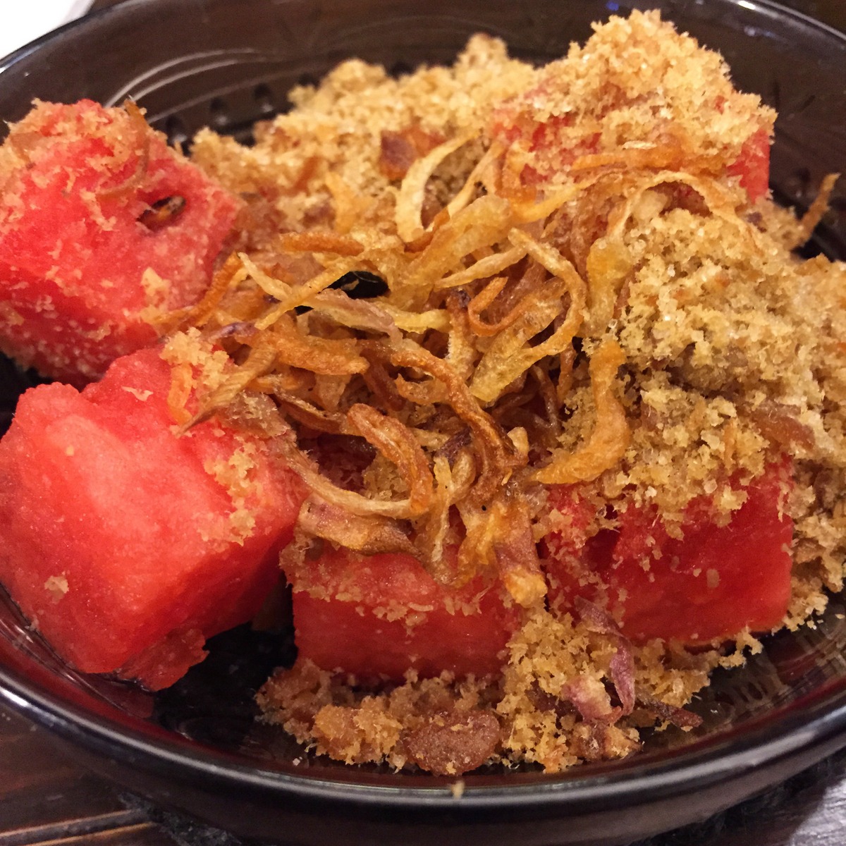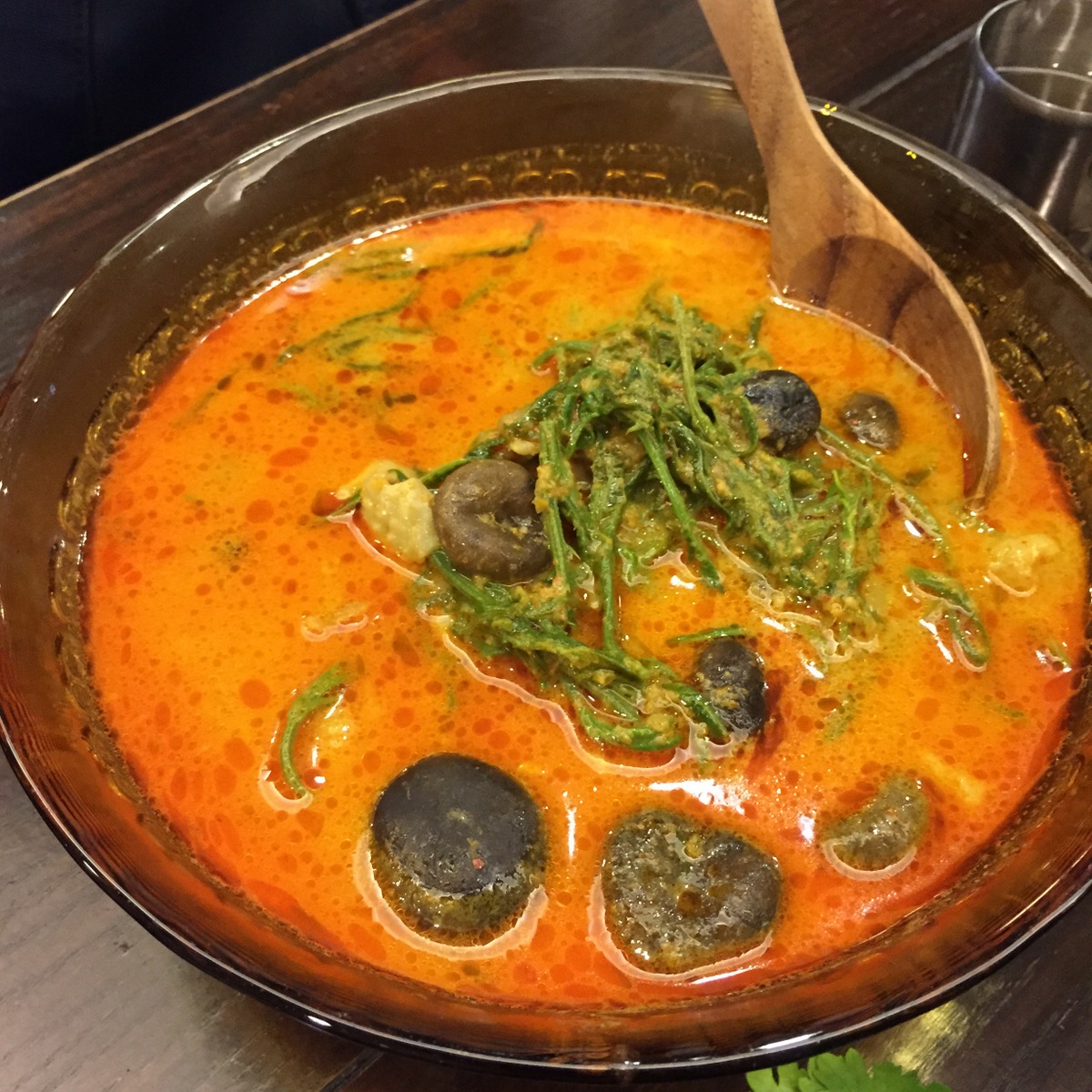 The menu is crafted by chef Vichit Mukkura whose one-star Michelin restaurant Khao is located on nearby Ekkamai Road. The presentation was pretty although several of the dishes tasted under-seasoned. The massaman curry was fantastic, though, and full of flavor. With the curfew still in place, staff took last orders at 7:30 and by 8:00 our dinner was winding down.